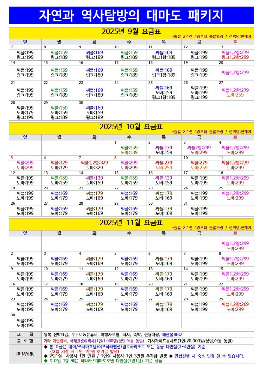 ✨ 9월~11월 대마도 1박2일 패키지 요금✨