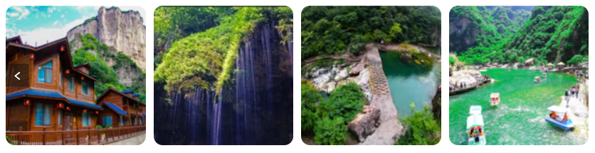 개요 : 도화곡은 태항산의 아름다운 협곡으로 엄동설한에도 복숭아 꽃이 피는 곳이라 하여 이름이 유래하였다. 도화곡 협곡은 수억만년전 지질 형성 중에 유수의 침식으로 인하여 홍암석이 씻겨 나타난 깊은 골짜기 이다. 협곡에는 맑은 물과 폭포가 흐르며, 연못, 폭포가 어우려져 마치 한폭의 그림과 같다. 주요 볼거리는 황룡담, 비룡협, 함주, 이룡희주, 구룡폭포가 있다.