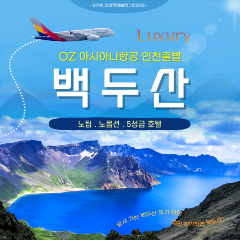 상품요약 : 백두산은 한반도와 중국 국경에 위치한 해발 2,744m의 활화산으로, 민족의 영산이라 불리는 곳입니다. 정상에는 세계적으로도 손꼽히는 화산호수인 **천지(天池)**가 자리하고 있으며, 천지의 신비로움과 대자연의 웅장함을 동시에 느낄 수 있는 특별한 여행지 입니다.