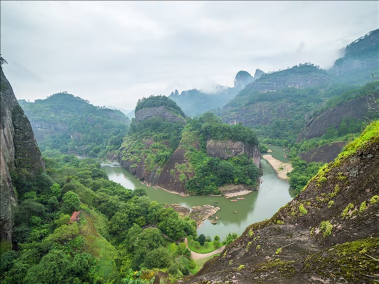 무이산으로 이동 구곡계-옥녀봉 ▶ 뗏목을 타고 내려오며 절경 관람 9.5km 에 이르는 구곡계를 따라 대나무 뗏목을 타고 유람하며, 중국 특유의 여유와 낭만을 즐길 수 있는 관광코스이다.