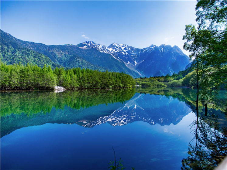 특히 맑은 날에는 호타카 산이 연못에 비치는 모습이 장관입니다.