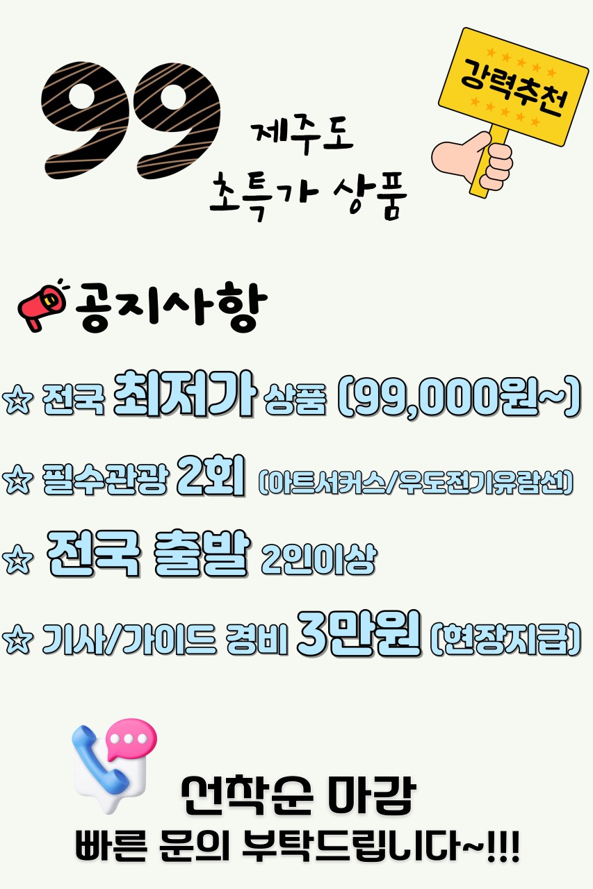 제주도 3월 3박4일 봄 특가 패키지 99,000원~