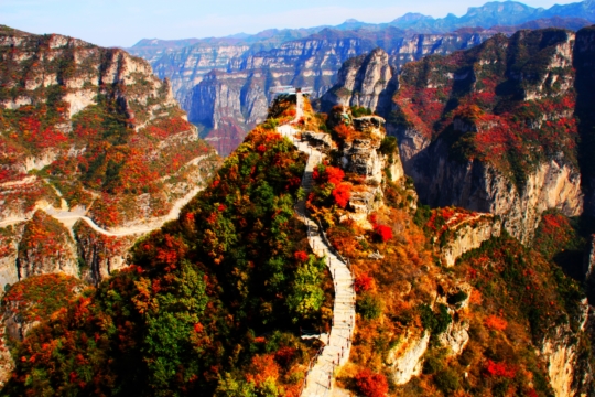 태항산(太行山)은 중국 화북 지역에 길게 뻗은 거대한 산맥으로, 장엄한 붉은 절벽과 깊게 파인 협곡, 그리고 공중에 떠 있는 잔도와 유리전망대로 유명한 관광지입니다.