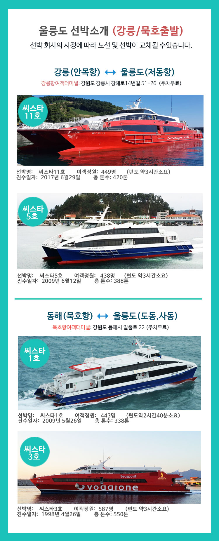 ※ 선박 입·출항 시간은 출발일 별 또는 선박 사정으로 인해 변동될 수 있습니다.