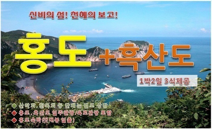 | 포함사항 | 목포/홍도/흑산도왕복선박료(쾌속선), 홍도숙박료, 식사3회(현지식), 홍도해상유람선관광비 |
