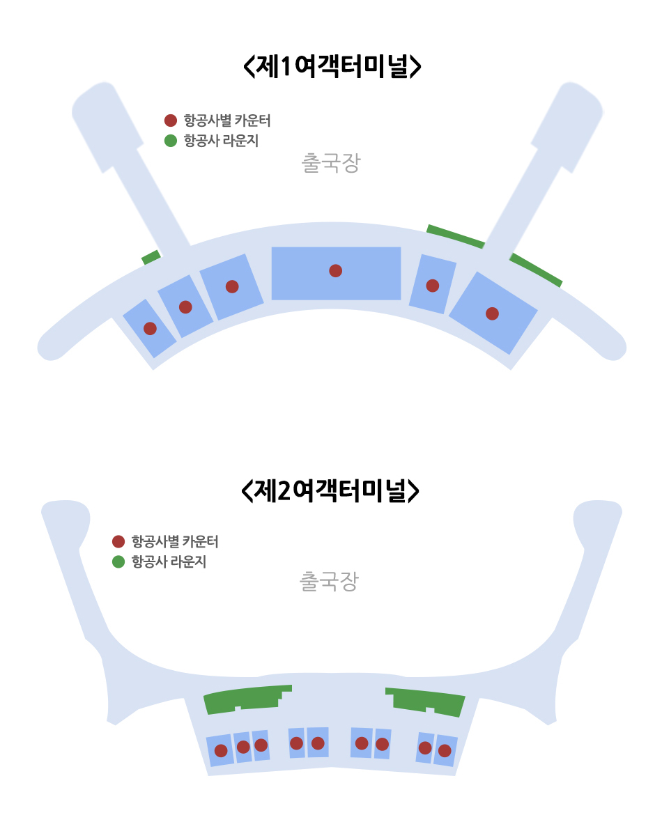 - 또한, 위에 안내된 항공사 예약이지만 공동운항사(실제운항사)가 그 외 항공사인 경우, 제1여객터미널을 이용하셔야 합니다.
