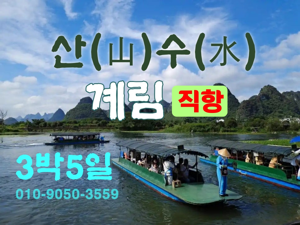 [7C계림직항]3월~6월 / 9월~11월 (수,목)출발 3박5일 계림 여행 일정 (노쇼핑·노옵션·노팁 기준)